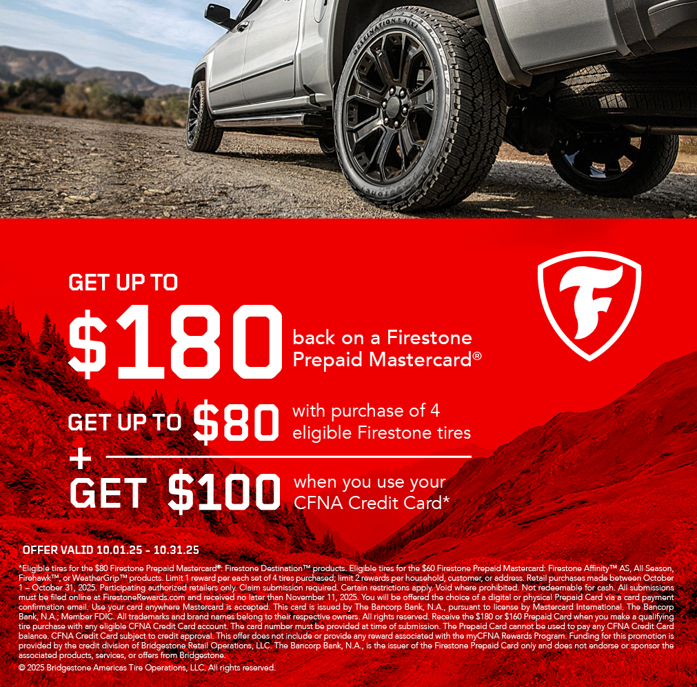 Eligible Firestone tires include: